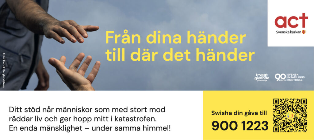 Läs mer om Act Svenska kyrkans verksamhet på svenskakyrkan.se/act.